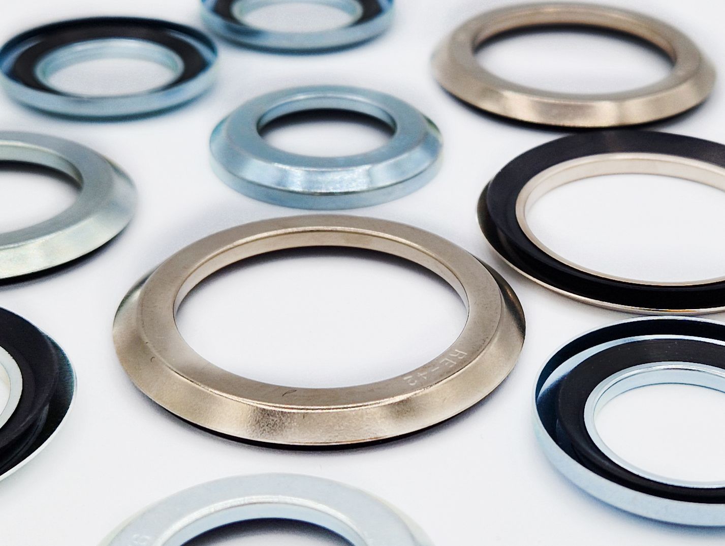 The axial seal with types RB and 9RB, commonly known as the "axial seal", is an axial ring with an elastomer part and a protective steel reinforcement.